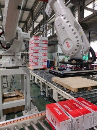 According to many project experience shows that the palletizing robot in the actual project site if the layout is reasonable and proper, it can easily achieve the above-mentioned palletizing efficiency or even exceed, if a palletizing robot corresponds to more than two production lines and multiple palletizing stations, then the overall palletizing efficiency will decrease, and the multi-station palletizing will increase because of the robot's travel. Therefore, the single cycle time becomes longer, which causes the overall palletizing efficiency to decline.